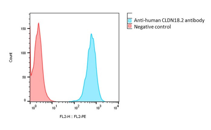 Detection of human CLDN18.2 expression on human CLDN18.2-CHO Stable cells using a monoclonal antibody specific for human CLDN18.2 (Cat #A1008)