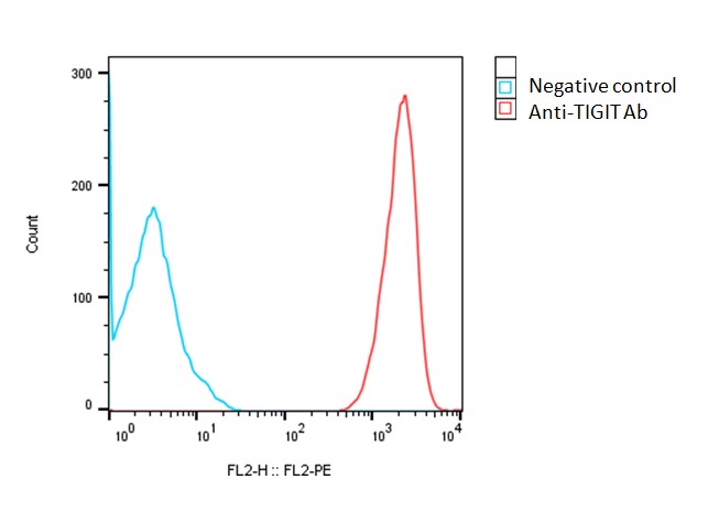 Detection of human TIGIT expression on human TIGIT-CHO-K1 stable cells using a monoclonal antibody specific for human TIGIT (Cat #A1014)