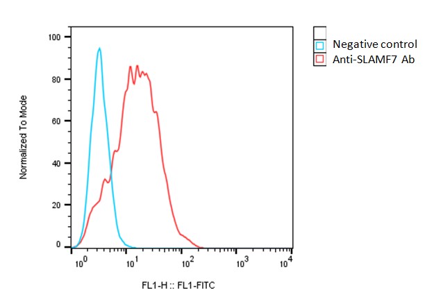 SLAMF7 (Signaling Lymphocytic Activation Molecule Family member 7), also known as CS1 (CRACC-specific antigen 1) or CD319, is a cell surface receptor protein belonging to the signaling lymphocytic activation molecule (SLAM) family. SLAMF7 is encoded by the SLAMF7 is expressed on a variety of immune cells, including natural killer (NK) cells, activated B cells, monocytes, and dendritic cells. It plays a critical role in regulating immune cell activation, differentiation, and effector function. Specifically, it serves as an activating receptor on NK cells, enhancing their ability to recognize and kill cancer cells.SLAMF7 is expressed at high levels in the bone marrow, spleen, and peripheral blood cells, particularly NK cells. It is also expressed at lower levels in other tissues, including lung, liver, and kidney.SLAMF7 is highly expressed on multiple myeloma cells, a type of cancer that arises from plasma cells in the bone marrow. In addition, SLAMF7 expression has been reported in other hematological malignancies, such as acute myeloid leukemia, chronic lymphocytic leukemia, and non-Hodgkin's lymphoma. Given its role in promoting NK cell-mediated cytotoxicity against cancer cells, SLAMF7 has emerged as a potential therapeutic target in these malignancies.