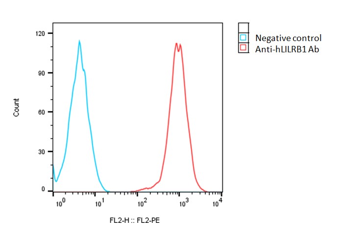Leukocyte immunoglobulin-like receptor B1 (LILRB1), also known as leukocyte immunoglobulin-like receptor 8 (LIR-8), is a type I transmembrane protein belonging to the immunoglobulin superfamily. It is expressed on the surface of various immune cells, including monocytes, macrophages, dendritic cells, and natural killer (NK) cells. LILRB1 is characterized by its extracellular domain, which contains four immunoglobulin-like domains and two cytoplasmic immunoreceptor tyrosine-based inhibitory motifs (ITIMs). Through its ITIMs, LILRB1 recruits tyrosine phosphases to inhibit the activity of immune cells like NK cells, monocytes, macrophages, and T and B cells. LILRB1 has been shown to play a role in various biological processes, including phagocytosis, cytokine production, and immune tolerance. In cancer, LILRB1 expression is increased leading to tumor progression, immune evasion and metastasis. Specifically, LILRB1 binds to tumor cells expressing beta 2 microglobulin complexed with MHC class I, allowing an escape from T cell recognition. Given its natural inhibitory function, LILRB1 is immunosuppressive and indirectly tumor supporting. Therefore studies suggest that targeting LILRB1 or disrupting the MHC class I-LILRB1 signaling axis can stop tumor progression in cancer, making LILRB1 a focus as a therapeutic target for cancer treatment.